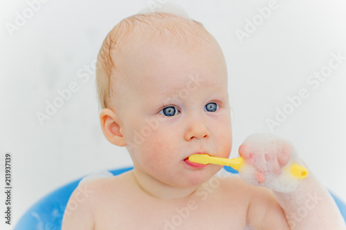 Baby boy in a bathroom
