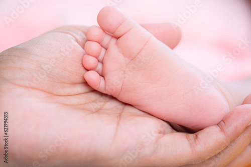 Baby feet,Baby feet in hands, mother, mother and her baby, happy family concept, beautiful conception image of childbirth.