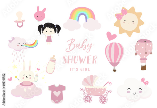 Baby shower object for girl with sky,balloon, rainbow, cloud