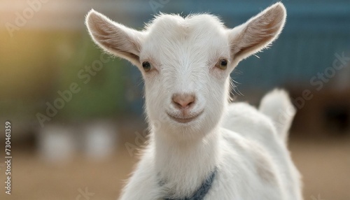 Baby white goat on farm.