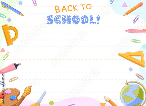 Back to school background template, books and school supplies