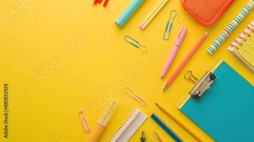 Back to School Supplies on a Yellow Background