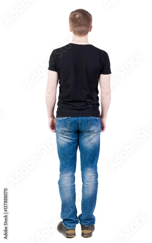 Back view of man in jeans. Standing young guy. Rear view people collection. backside view of person. Isolated over white background.