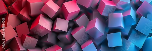 background image based on geometric 3d forms with variations in size and color, color is mainly red with a bit of orange,