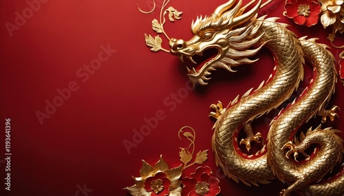 Background luxury red and wooden Chinese New Year year of the gold dragon
