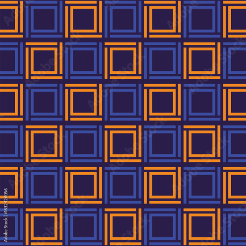 Background pattern seamless square orange and blue on purple color. Abstract texture vector