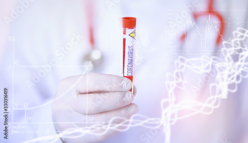 Background researcher in the laboratory is testing drugs for the treatment of viral pneumonia. Coronovirus blood test of infected patients. World pandemic.