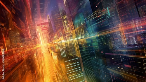background with city with bright colors and high-tech architecture