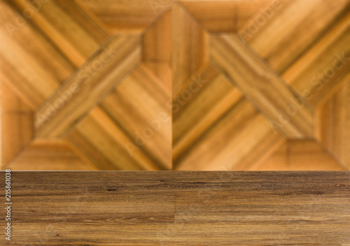 Background with empty wooden table. Flooring Texture of timbered board. Closeup.