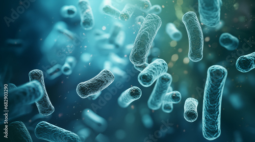 Bacteria on water background. Legionella pneumophila, a gram-negative bacillus that causes pneumonia. Microscopic illustration.