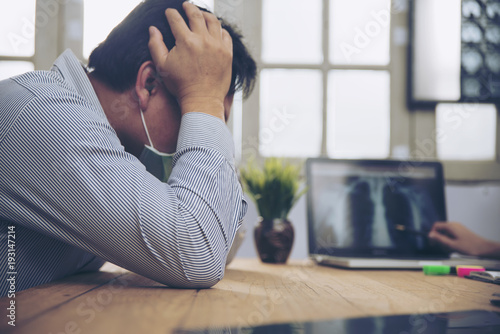 Bad news for medical diagnosis,Serious patients are listening x-ray scan results from professional doctor.Patient and doctor concept