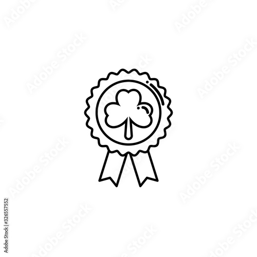 badge with green ribbon, flat style icon