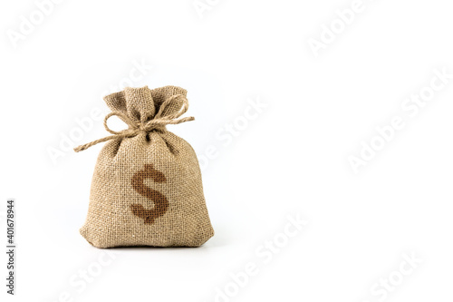Bag of money isolated on a white background. Burlap. Empty space for insertion.