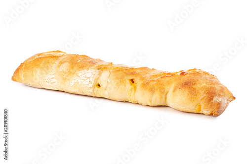 Baguette with cheese on white background isolation
