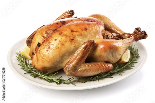 Baked Cornish Game Hen - Delicious Poultry Dish Freshly Cooked and Glazed, Isolated on White Background