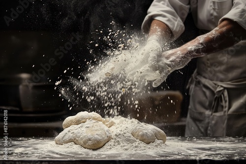 Baker Dusting Dough with Flour in a Bakery