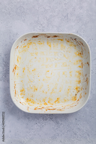 Baking tray or casserole with burnt on grease
