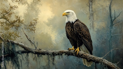 Bald Eagle Perched on Tree Branch.
