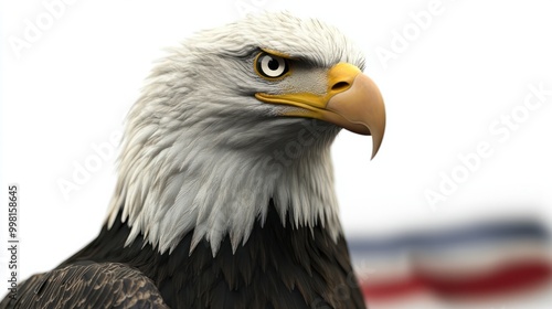 Bald Eagle with America flag in background, Transparent background, Generative ai