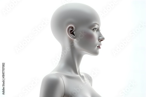 Bald Female Head Profile on White Background