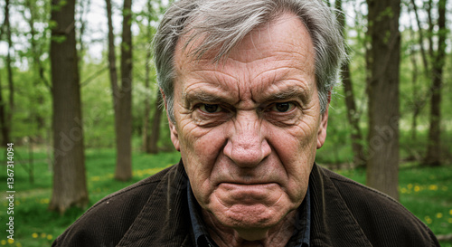 Ball games in the spring forest, Blurred face of a person in a green forest setting