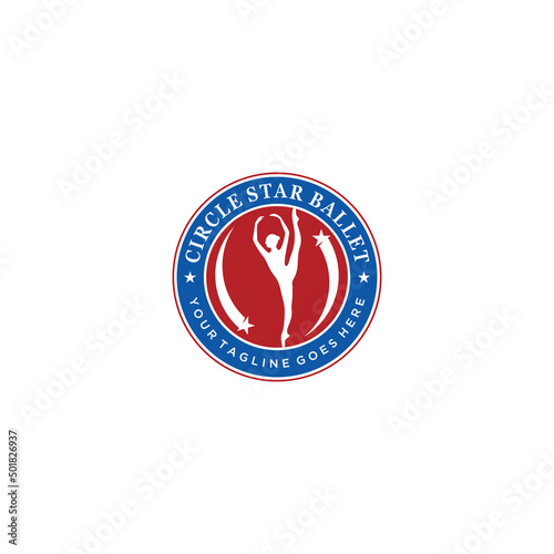 Ballet dance and circle stars logo design