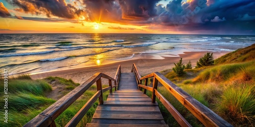 Baltic Sea Beach Wooden Stairs Lithuania Surreal Photography