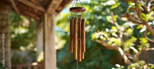 Bamboo Wind Chimes Gently Swaying Outdoors on a Sunny Day