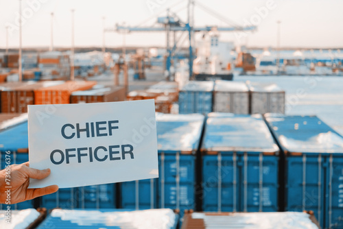 Banner Poster Paper With The Phrase Chief Officer With A Logistics Terminal In The Background