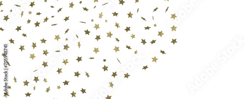Banner with golden decoration. Festive border with falling glitter dust and stars.