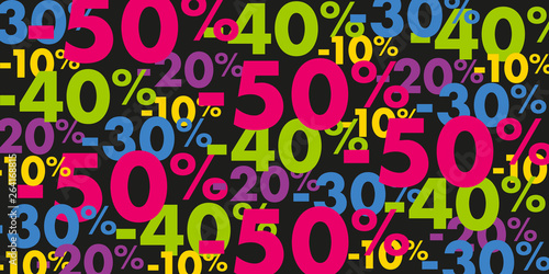 Bannière publicitaire pour des promotions, présentant une multitude de pourcentage de réduction pour les soldes