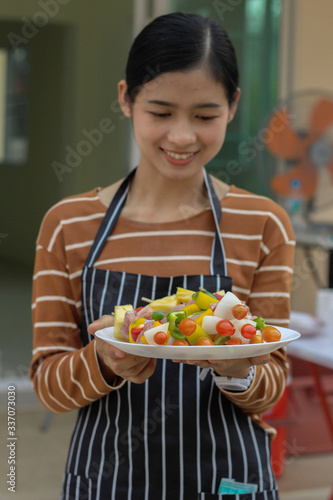 barbecue,Bar-B-Q,Barbeque Grill Street Food in thailand,market and Pork BBQ