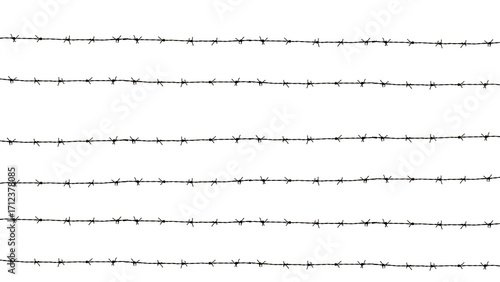 Barbed Wire: An arresting visual of several strands of barbed wire, embodying themes of borders, confinement, and security, all rendered with stark clarity.