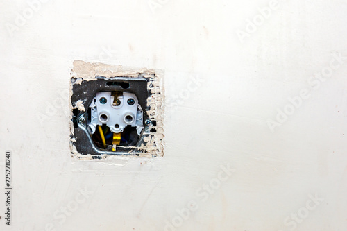 bare socket on a light wall, photo with space for text