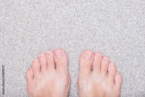 Barefoot woman feet at home on a carpet,casual,home in winter
