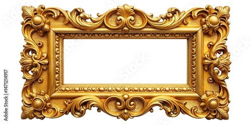 Baroque Gold Picture Frame, White Background, Classic Style