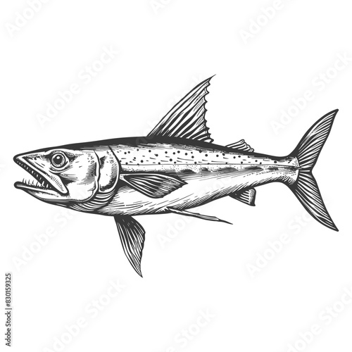 Barracuda animal full with old engraving sketch style