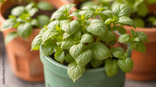 Basil plant in a pot, medicine plant, fresh basil plant, healthy plant