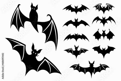 Bat Silhouette Set – Flying Bats Vector Clipart for Halloween Decor and Crafts