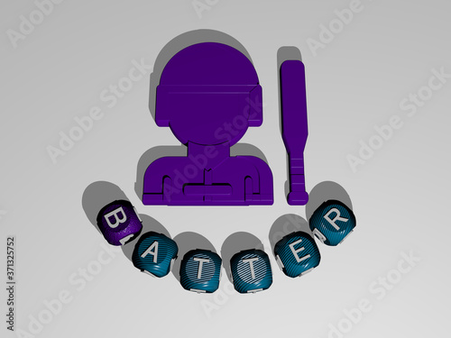 batter text around the 3D icon - 3D illustration for baseball and background