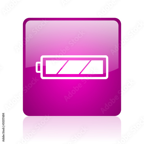 battery violet square web glossy icon