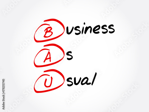 BAU - Business as Usual acronym, business concept background