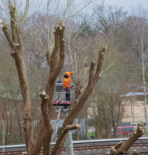 Baumkletterer bei der Baumpflege im Frühling