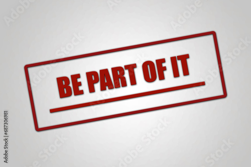 Be Part of it. A red stamp illustration isolated on light grey background.