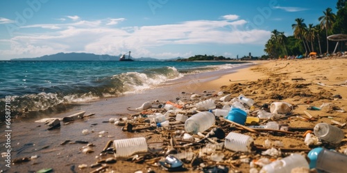 beach full of garbage and plastic waste, generative AI