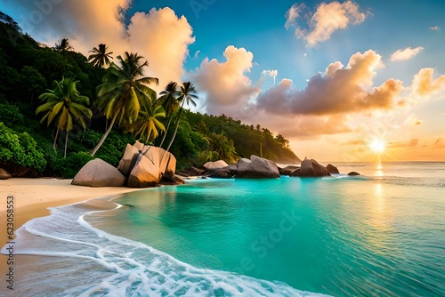 beach with palm trees generated Ai.