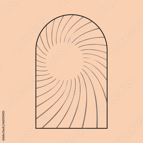 Beams of Light. Sun, Sunburst, Mystical Sunburst. Abstract Colorful Minimalistic Linear Design Element, geometric Form, Modern Arch Shape.