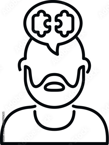 Bearded man icon showing a speech bubble with two puzzle pieces connecting