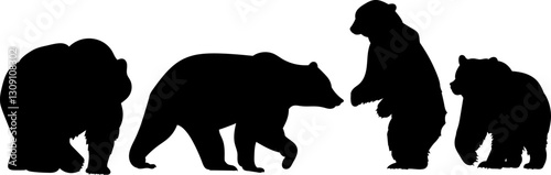 bears set of silhouettes, vector on white background