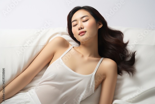 Beautiful asian woman sleeping on the bed in the bedroom.